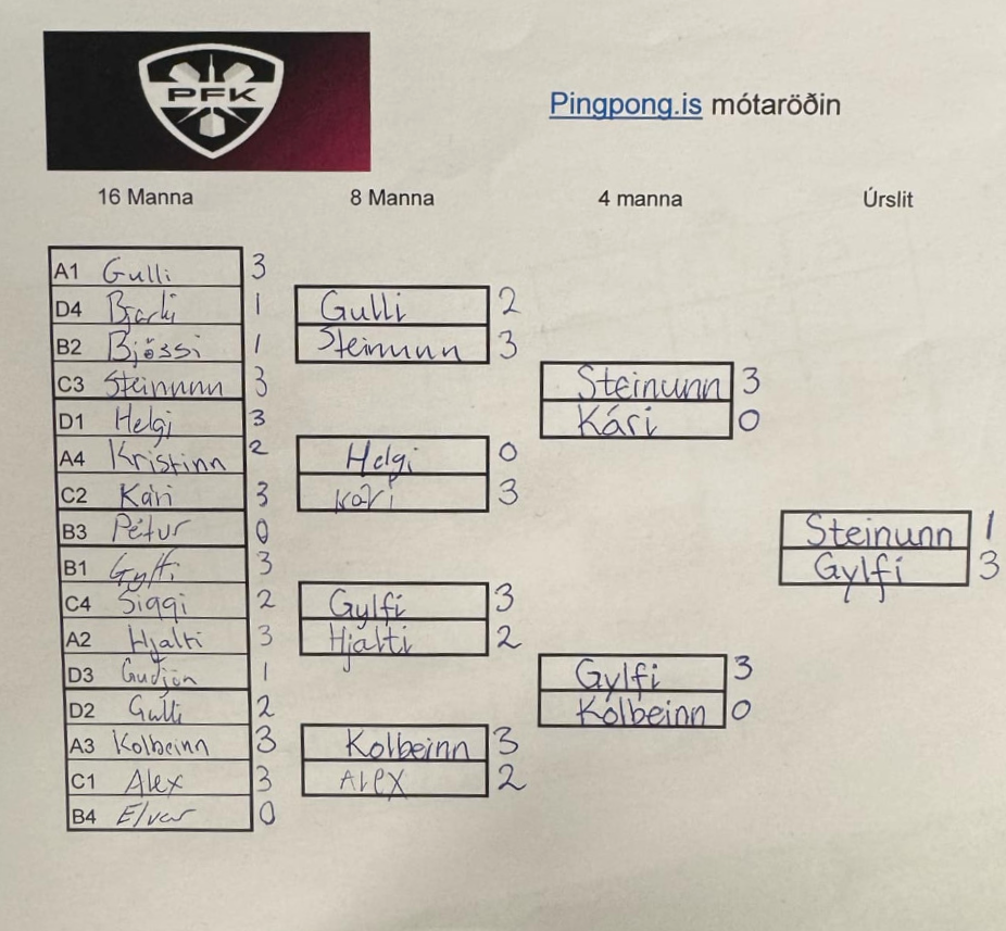 Hér eru úrslit leikja í útslættinum 5. umferð Pingpong.is mótaröðinn